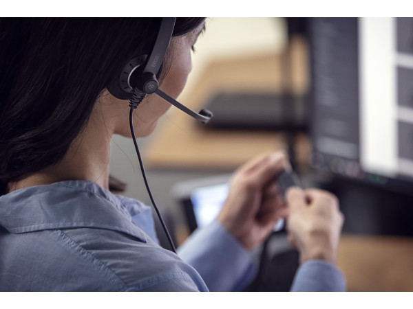 Kablet, tosidig headset med 3,5 mm kontakt, USB-tilkobling og EUs Noise at Work-støybegrensning. Perfekt headset til kontoransatte som er opptatt av komfort, stil og god lyd, og som styrer samtaler på både mobil og PC. Skype for Business-sertifisert.