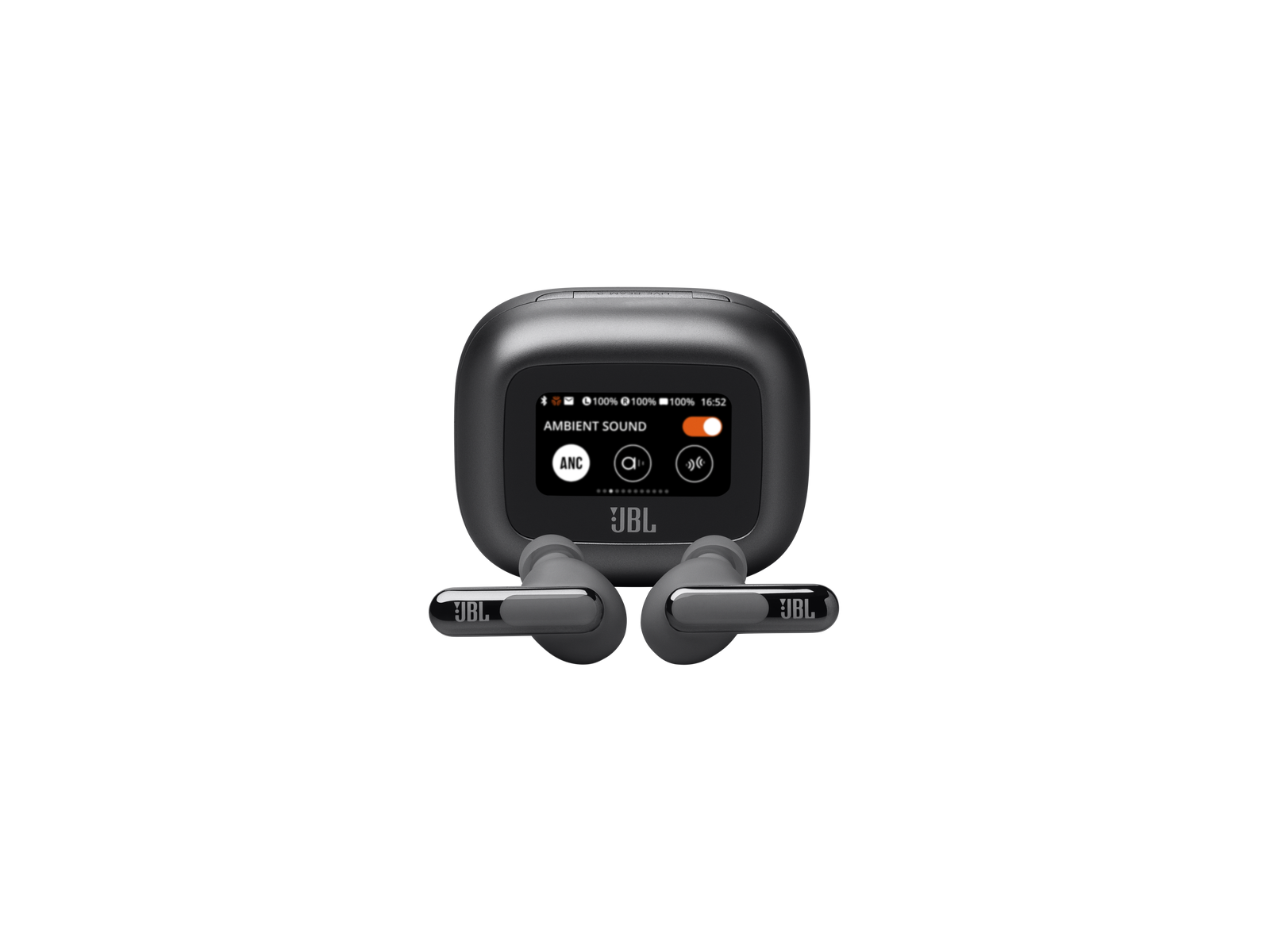 Få lyden som passer for deg, uten å se på telefonen. Bruk tastene på Smart Charging Case™ for JBL Live Beam 3 helt trådløse ørepropper med støydemping og Hi-Res Audio for å styre samtlige funksjoner, uten å åpne JBL-appen på enheten. Juster volum og EQ, kontroller musikken, ta telefonsamtaler, se meldinger og gjør skjermspareren personlig med bildene du liker best. Alt det får du, før du engang får nyte gigantisk JBL Signature Sound fra selve Live Beam 3-øreproppene. Klassens beste støydemping holder distraksjoner ute. JBL Spatial Sound gjør at du lever deg helt inn i filmer og musikk. Og må du ta en telefon, stiller vi med 6 mikrofoner for perfekt lydkvalitet, selv i omgivelser med veldig mye bakgrunnsstøy. Alt dette pluss 48-timers lading: 12 timer i øreproppene* og ytterligere 36 i etuiet – og de kan lade trådløst. Ladeetuiet har en løkke til festesnor for enda mer praktisk bruk. God lyd har aldri vært enklere. (* med ANC av)